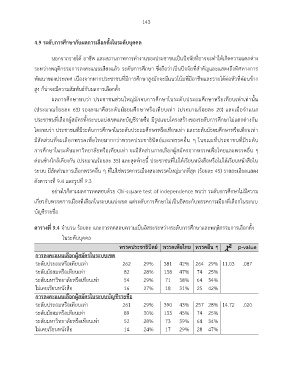 ตำรำงที่ 9.4 จ านวน ร้อยละ และการทดสอบความเป็นอิสระระหว่างระดับการศึกษาและพฤติกรรมการเลือกตั้ง